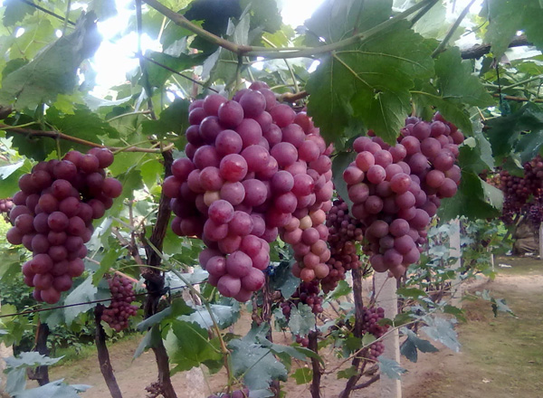 ? ? 紅提,又名晚紅、紅地球、紅提子,商品名稱紅提,屬歐亞種,是由美國加利福尼亞州立大學(xué)于70年代用(皇帝×L12-80)×S45-48雜交育成。果穗大,整齊度好,平均單粒重10 克,最大單粒重13克,紅色或紫紅色,果皮中厚,易剝離,肉質(zhì)堅(jiān)實(shí)而脆,細(xì)嫩多汁,硬度大,刀切而不流汁。香甜可口,風(fēng)味獨(dú)特。7月下旬開始著色,9月下旬成熟。紅地球葡萄不易掉粒,耐貯運(yùn),冷藏可至2-3月,貨架期長。豐產(chǎn)性好,一般畝產(chǎn)1750-2000公斤,品質(zhì)上等,市場競爭力強(qiáng),是鮮食葡萄品種中最珍貴的和最具有商業(yè)價值的品種之一。